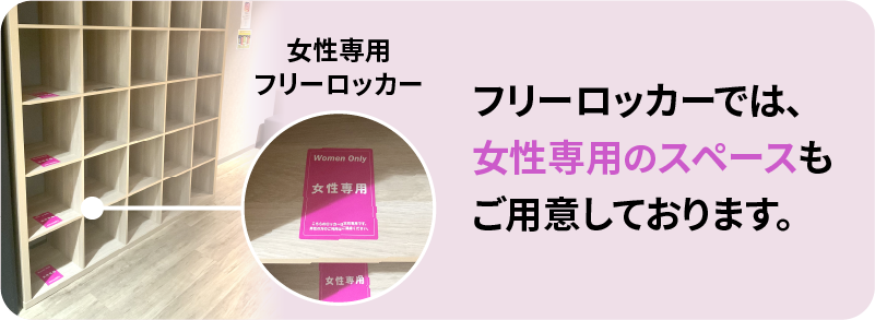 ご自分のバッグやコートなどはコチラのフリーロッカーに置いていただけます。タオルやペットボトルなどのフィットネスに必要な携帯品の保管にもご利用いただけます。